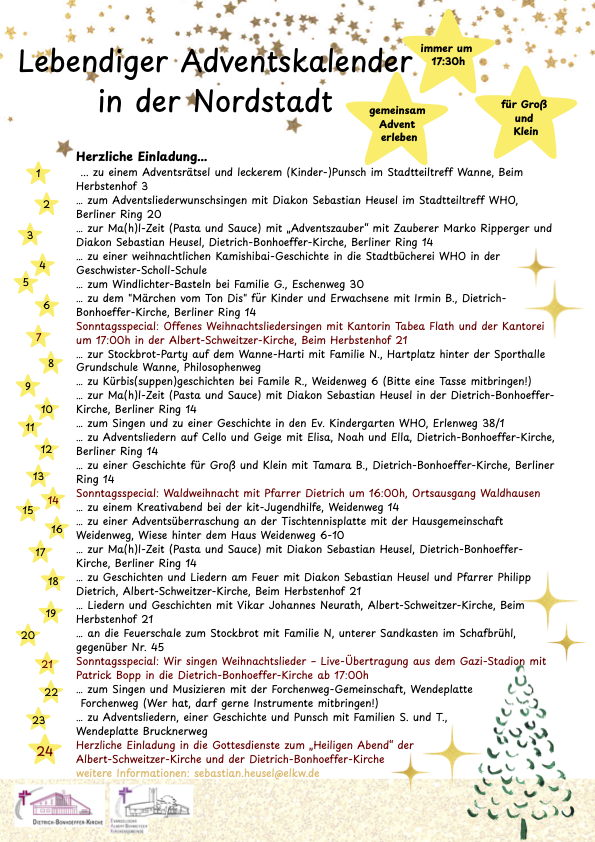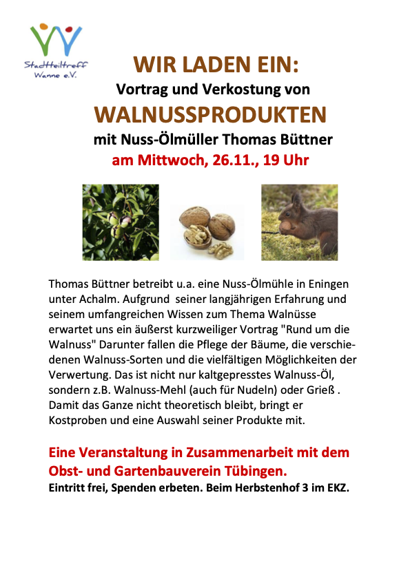 Wir laden Sie herzlich zu den vielfältigen Veranstaltungen unseres Stadtteiltreffs ein! Sie finden hier den Veranstaltungskalender und hier das Programm für November 2025 als PDF-Datei.
