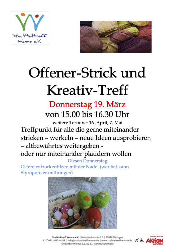 Wir laden Sie herzlich zu den vielfältigen Veranstaltungen unseres Stadtteiltreffs ein! Sie finden hier den Veranstaltungskalender und hier das Programm für Dezember 2025 als PDF-Datei.